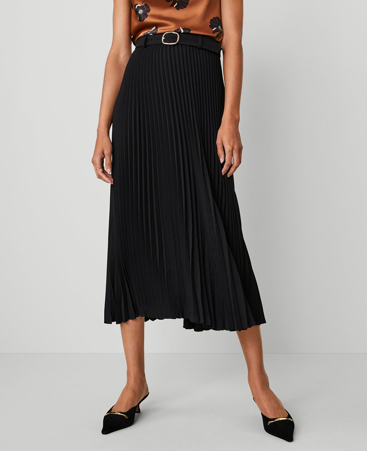 Belted Pleated Midi Skirt