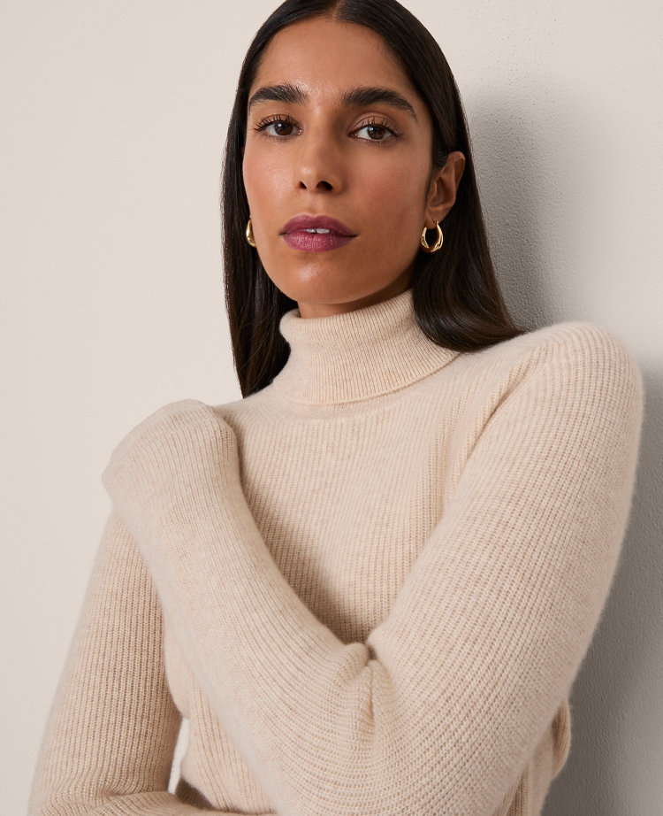 A perennial favorite, our ribbed cashmere turtleneck sweater is a forever essential. Turtleneck. Long sleeves.