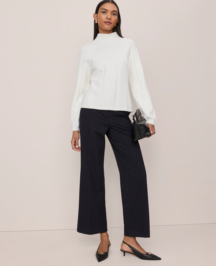 Contrast stitched detailing adds a textural appeal to this versatile and flattering turtleneck sweater. Turtleneck. Long sleeves. Ribbed cuffs and hem.