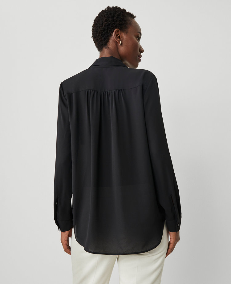 Pleated detailing adds extra allure to our mixed media top – proving that everything’s better with a little pleat (or two). Boatneck. Long sleeves with shirred sleeve caps and elasticized cuffs. Woven sleeves. Knit body.