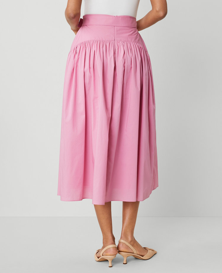 With a sleek, belted yoke and flowing, full silhouette, this midi skirt takes a sophisticated approach to romance. Adjustable buckle belt. Hidden back-zip closure. Lined.