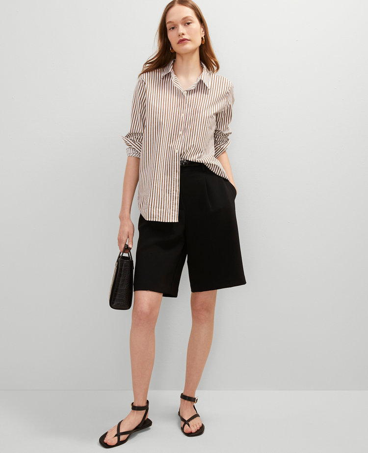 We love the classic appeal of a crisp button-down, especially when done in a relaxed silhouette. Point collar. Long sleeves with button cuffs. Button front. Back yoke with box pleat. Shirttail hem.