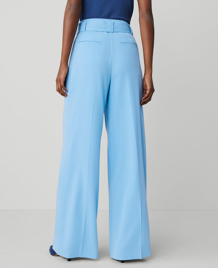 A modern must-have with a statement leg and flattering high waist. Front zip with a hook-and-bar closure. Belt loops. Removable D-ring belt. Onseam pockets. Back welt pockets.